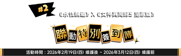 ※ 聯動時間 : 2026年2月19日(週四) 維護後 ~ 2026年4月15日(週三) 22:59(GMT+8)