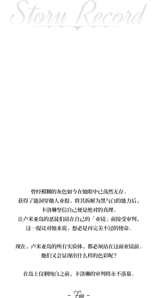 * 达成收藏条件后,即可在收藏库中领取「卡洛琳 谎言的气息」头像。
