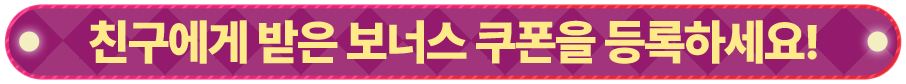 ※ 보너스 쿠폰은 계정당 1회만 등록 가능하며, 등록 후 다른 쿠폰은 사용할 수 없습니다.