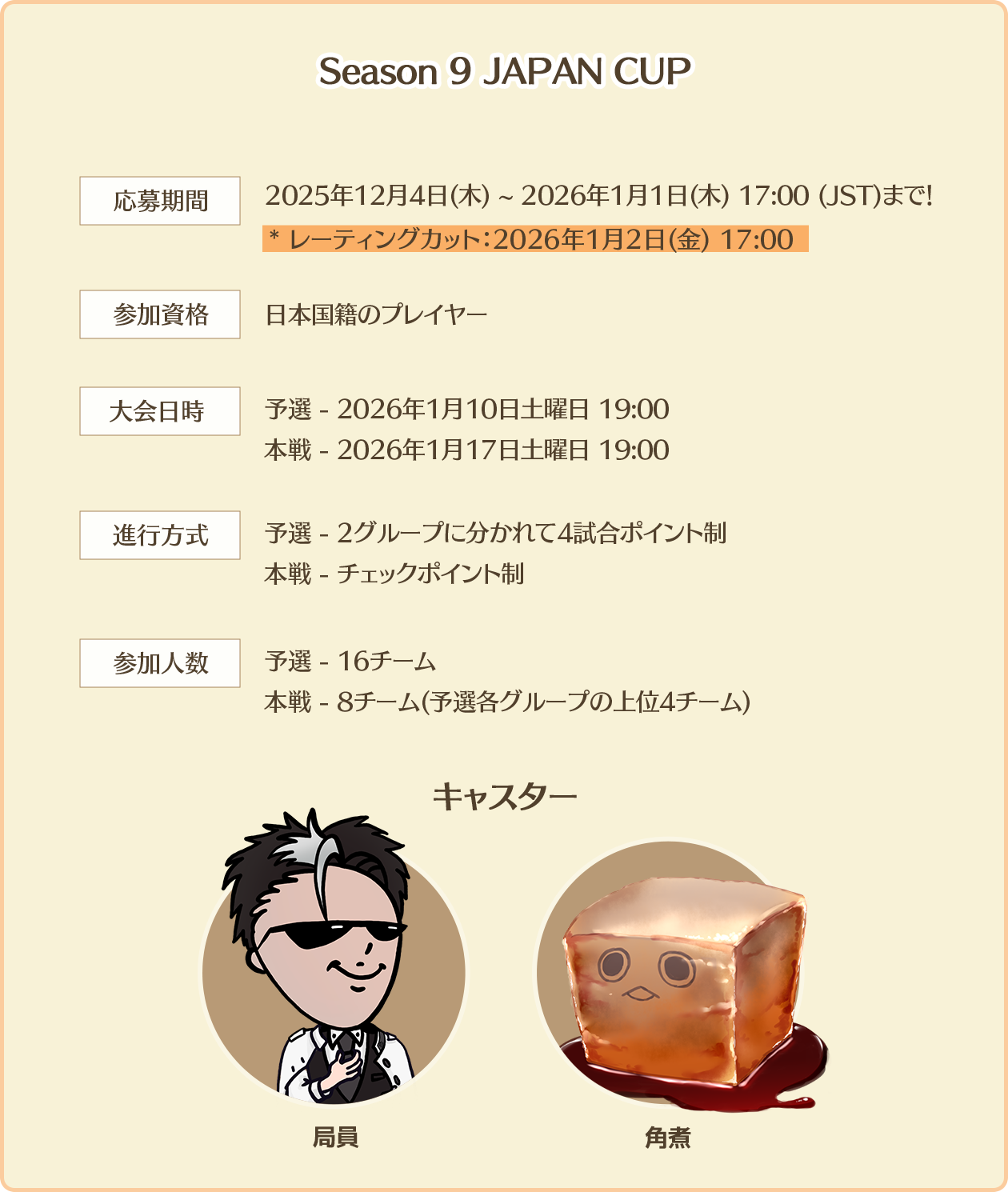 ※ 「JAPAN CUP」は日本国籍のプレイヤーのみ参加できます。