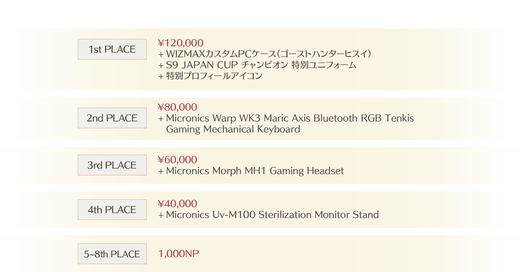※ イベントおよび大会の景品は日本以外の地域に配送できません。